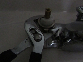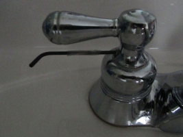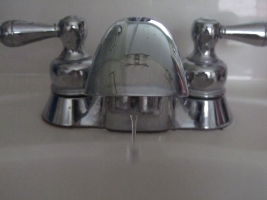 Remove handle on leaky faucet. Most handles have a small allen screw that needs removing or at least loosening in order to remove the handle. Once the handle is removed, you can proceed to next step.